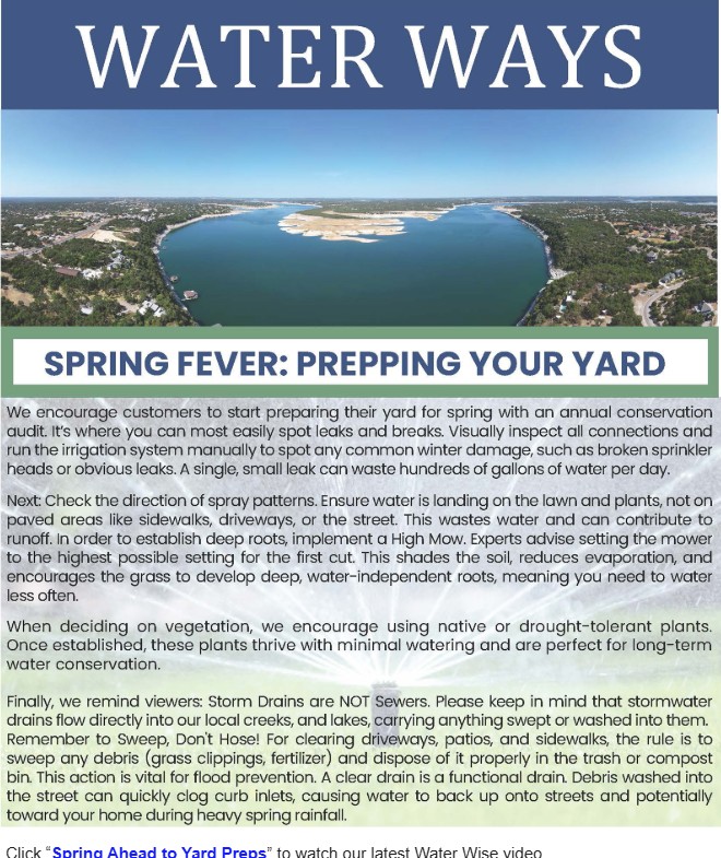 Happy Spring! We’re excited to share the latest edition of Water Ways, the District’s newsletter. Inside, you’ll find quick tips to help prepare your yard for spring, along with an explanation of why homes in the WCID No. 17 service area are required to have a Pressure Regulating Valve.