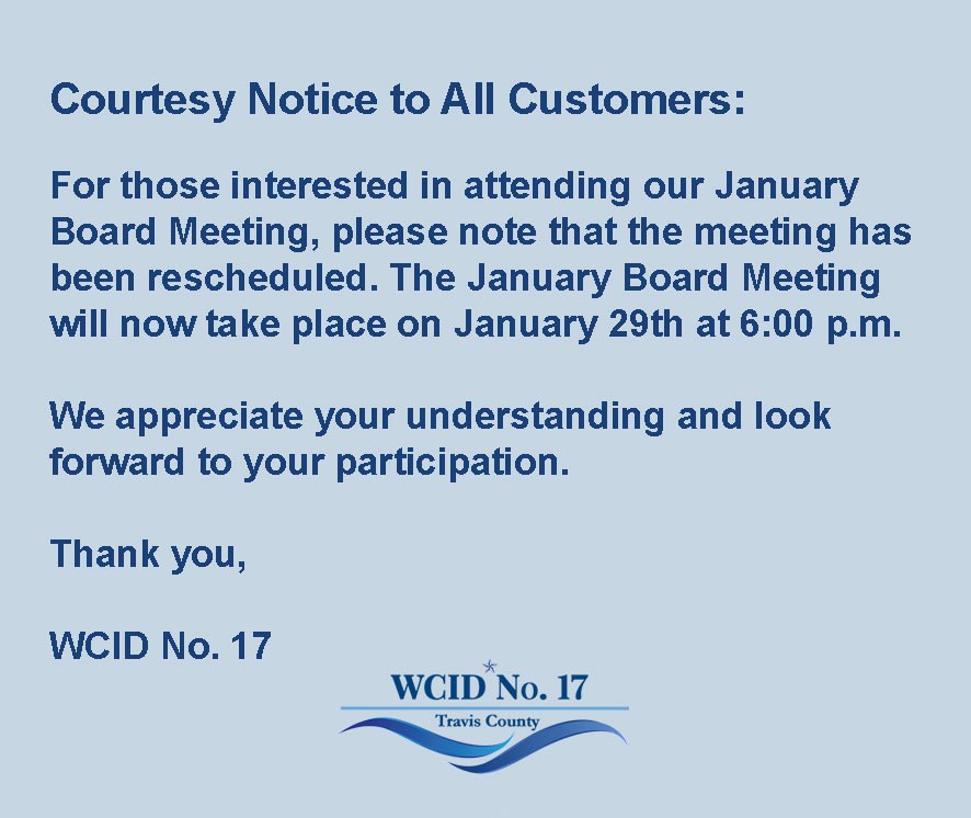 Please know WCID No. 17 does not contact customers asking for banking information. If you receive a call from someone […]