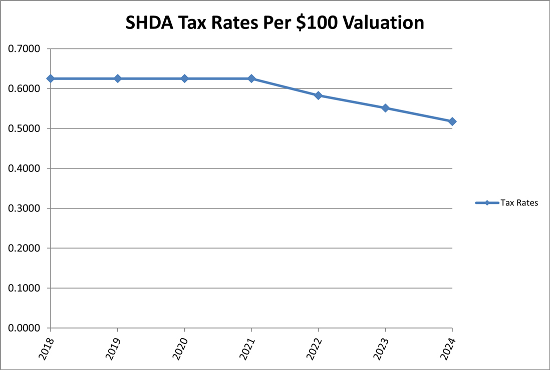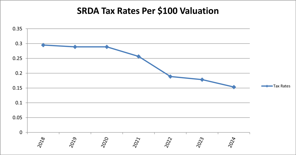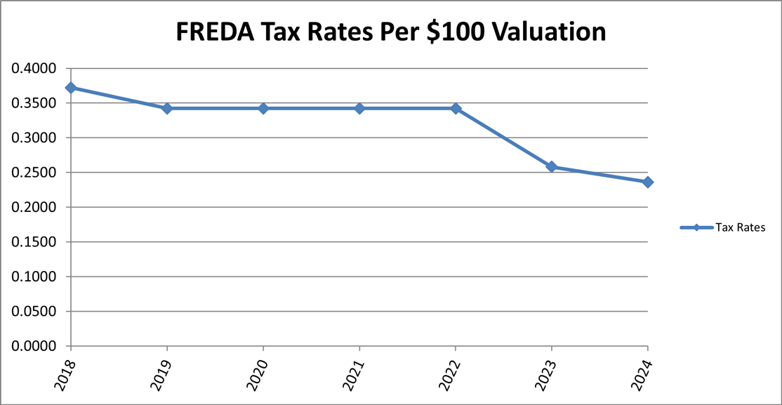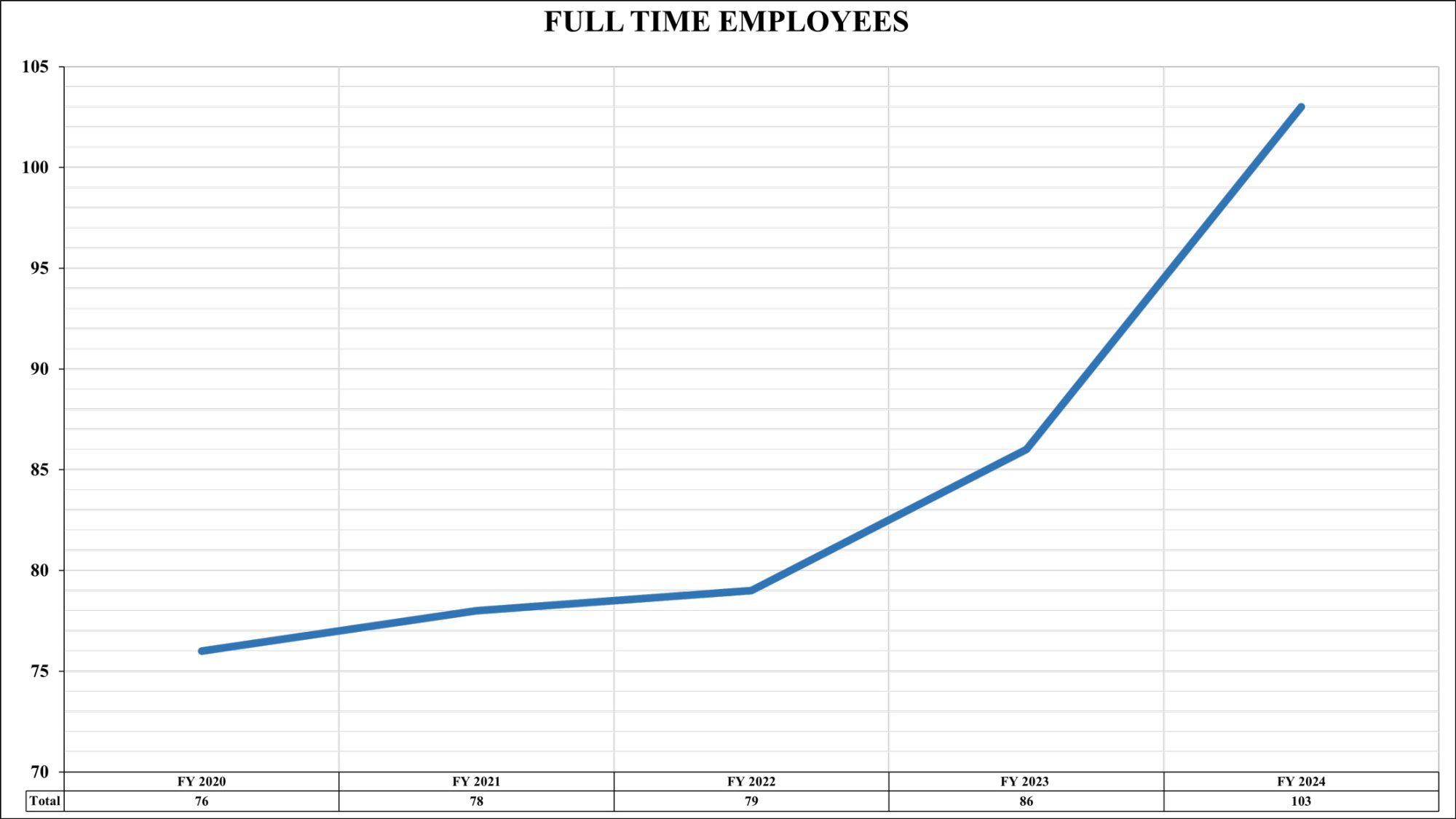 Below are charts to show the past five years of Revenue and Expenses by fund per capita (General Fund, Debt Service Fund and Capital Projects Fund Per number of District Wide Customers) and tax collections per capita per defined area (based on a number of parcels in each defined area) as well as the number of Full Time Equivalent (FTE’s) over the previous five years.